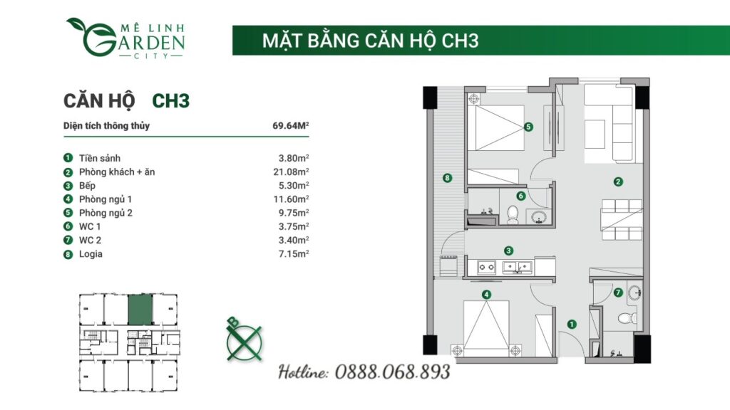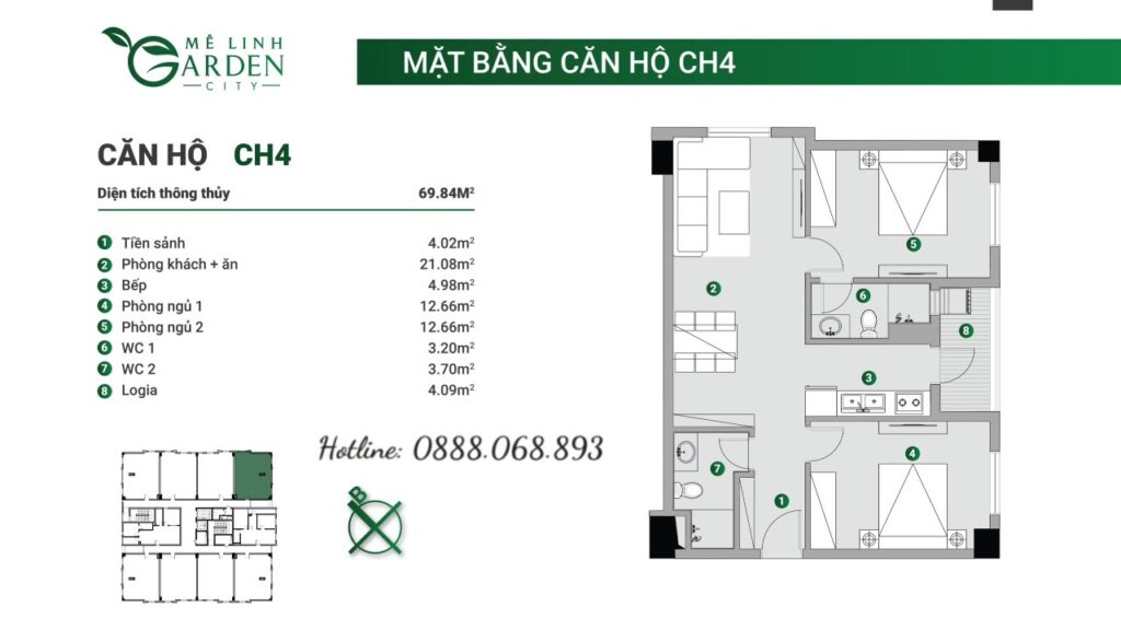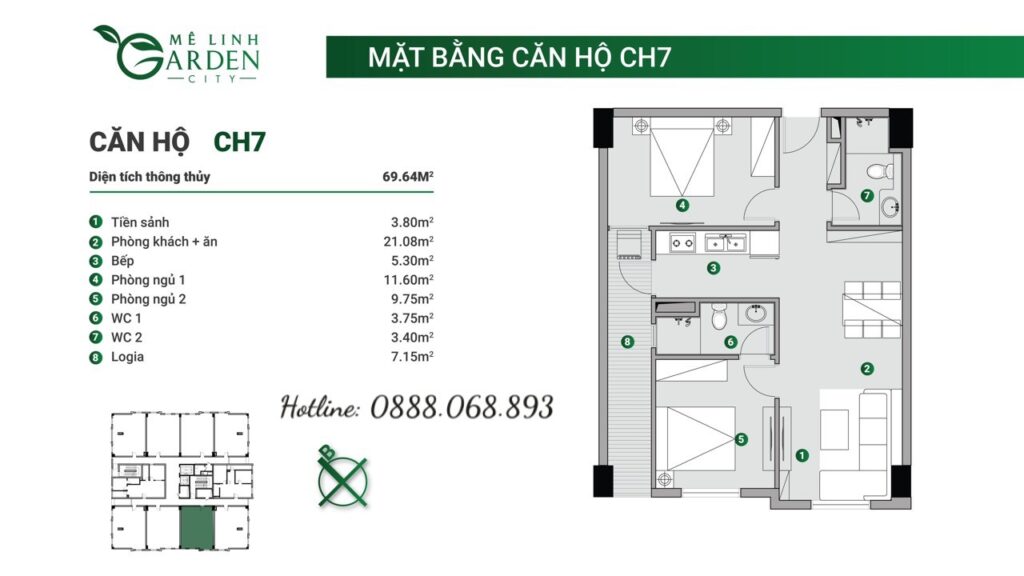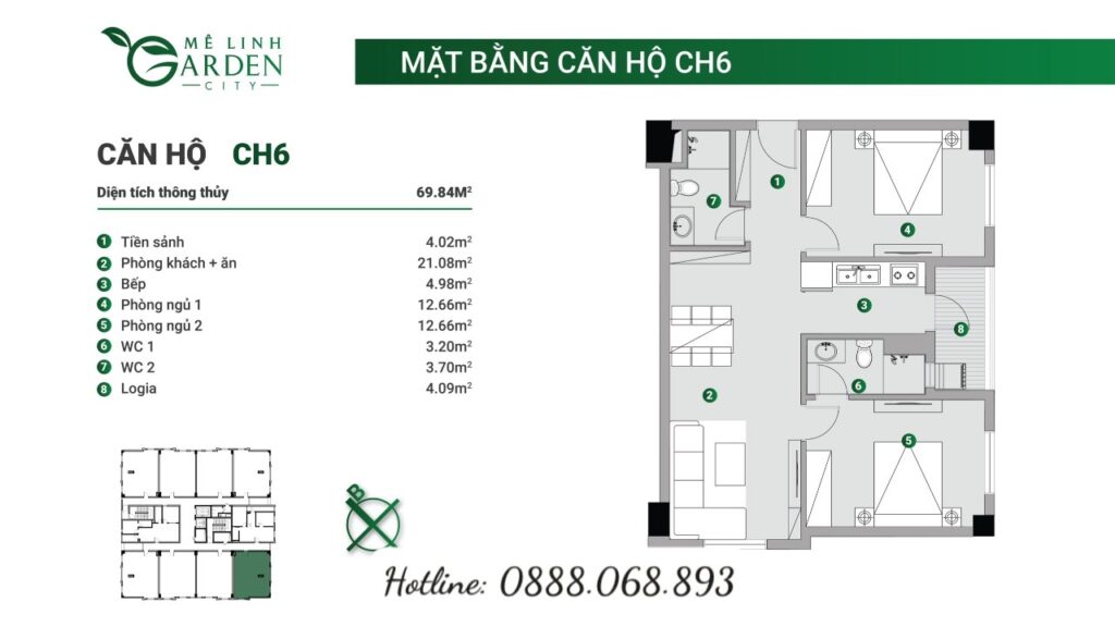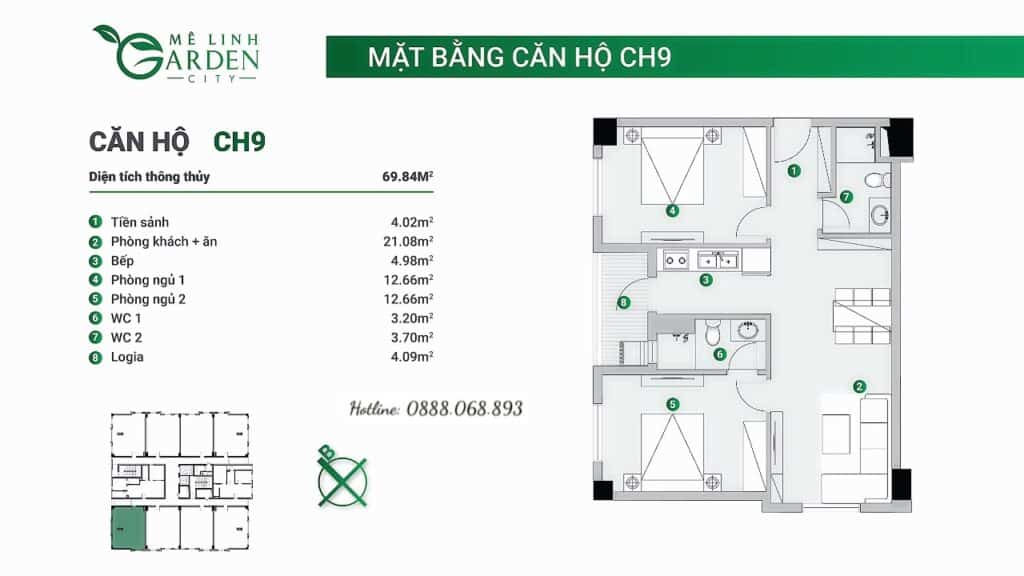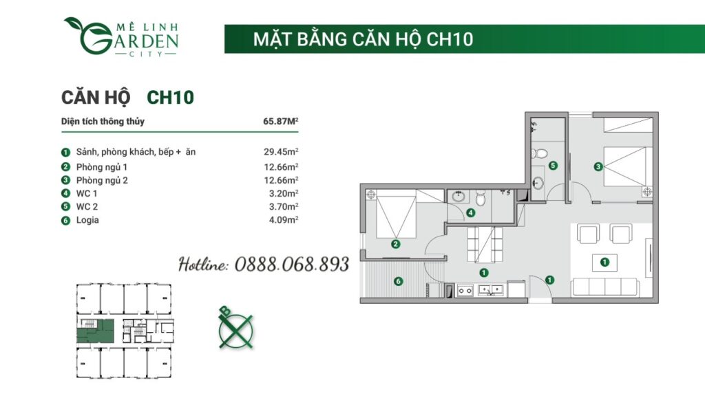 - Diện tích căn hộ: 62,8m – 65,8m2 – 69,8m2